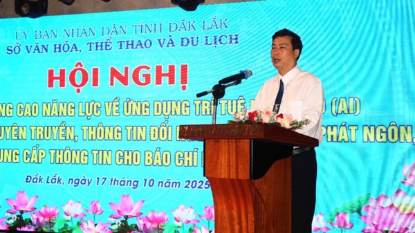 Ngày 17/10, Sở Văn hóa, Thể thao và Du lịch tỉnh Đắk Lắk tổ chức Hội nghị nâng cao năng lực ứng dụng trí tuệ nhân tạo (AI) trong công tác tuyên truyền, thông tin đối ngoại và kỹ năng phát ngôn, cung cấp thông tin cho báo chí năm 2025.