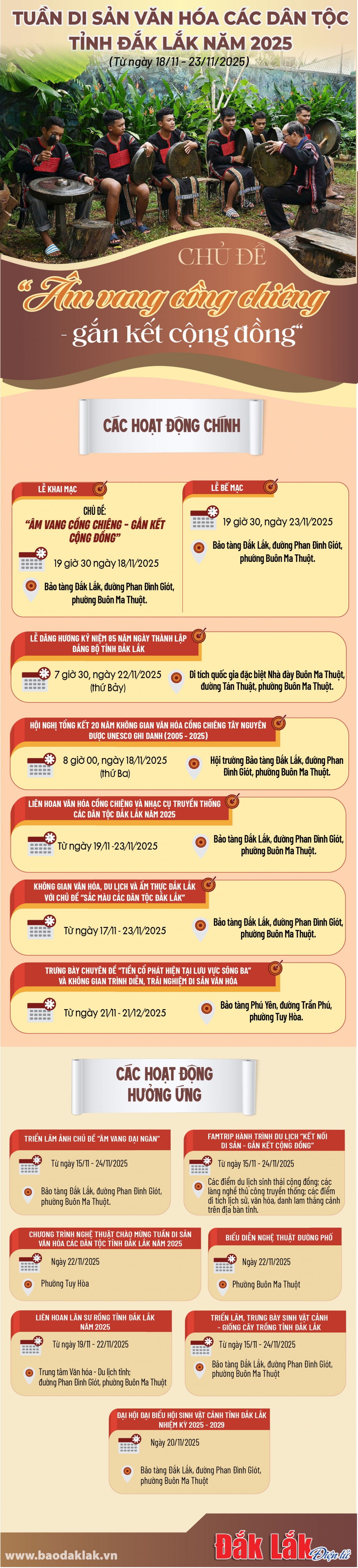 Kế hoạch Tổ chức Tuần Di sản văn hóa các dân tộc tỉnh Đắk Lắk năm 2025 Âm vang cồng chiêng - gắn kết cộng đồng