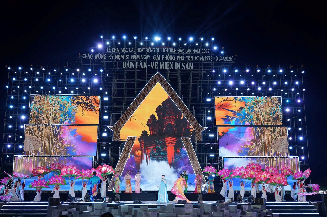 Tối ngày 29/3, Lễ khai mạc các hoạt động du lịch tỉnh Đắk Lắk năm 2026 với chủ đề “Đắk Lắk - Về miền di sản” chính thức diễn ra tại Quảng trường Phú Yên, phường Tuy Hòa.